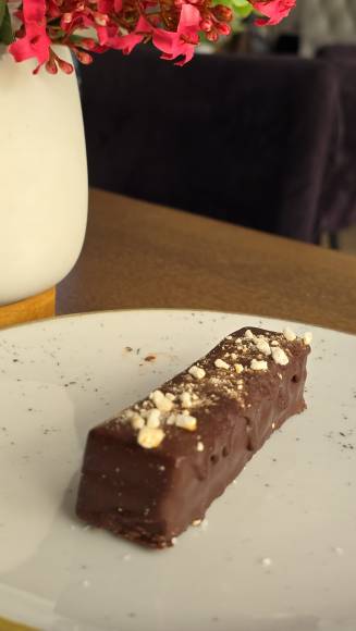 Sirovinski sastav: Bademi, lješnici, indijski orasi, urme, sirup od urmi, orasi, sojino mlijeko, rum, kafa, kakao maslac, crna čokolada.