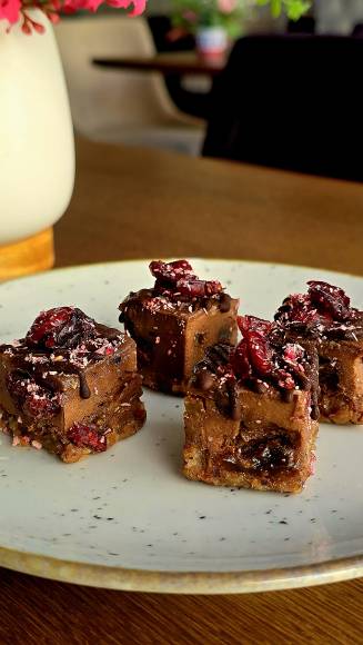 Sirovinski sastav: Leblebija, sojino mlijeko, crna čokolada, brusnice, suvo grožđe, urme, bademi, orasi, sirup od urmi, lješnik pasta